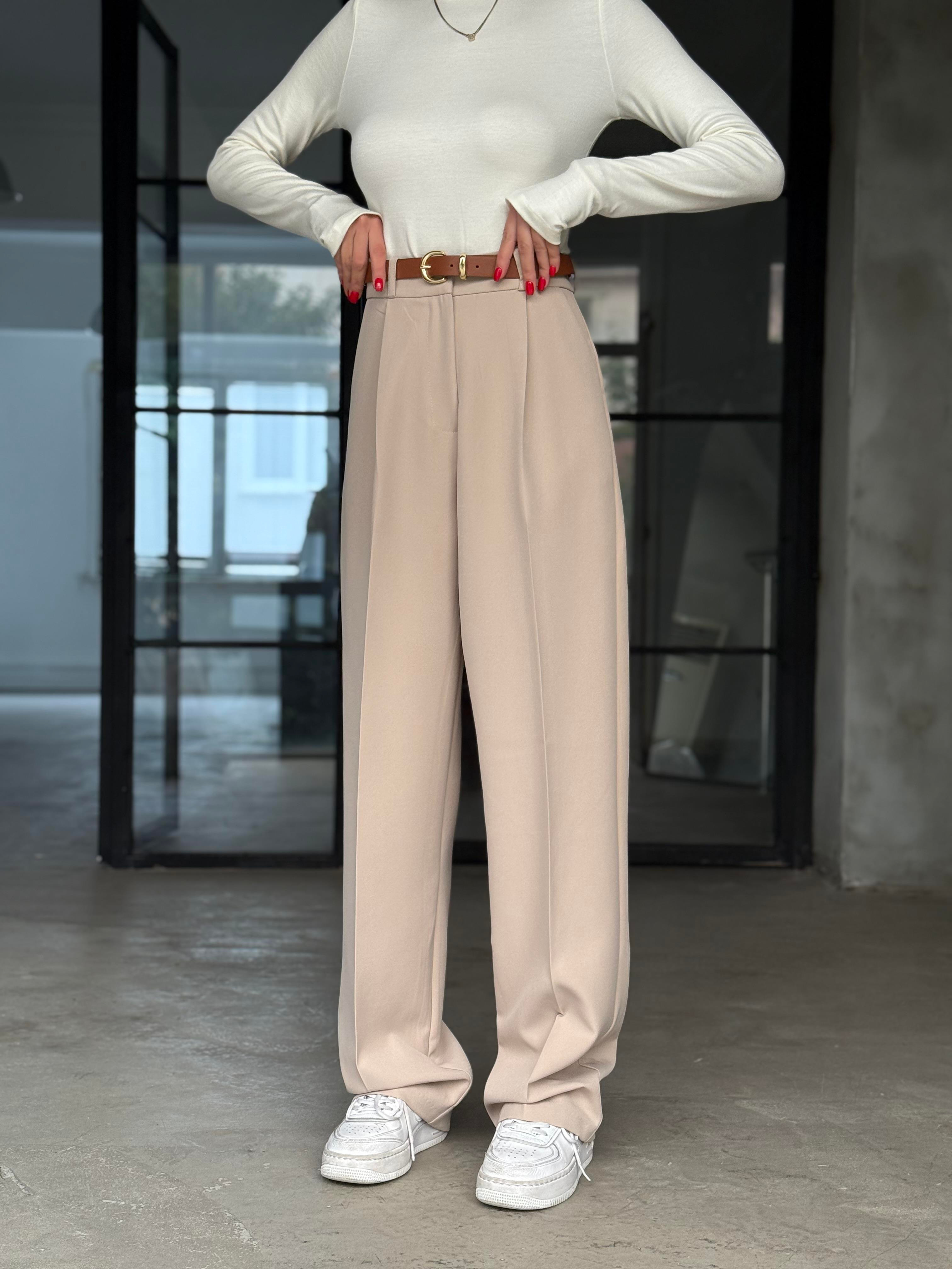 Premium Pensli Palazzo Pantolon - Krem - Dominatrend