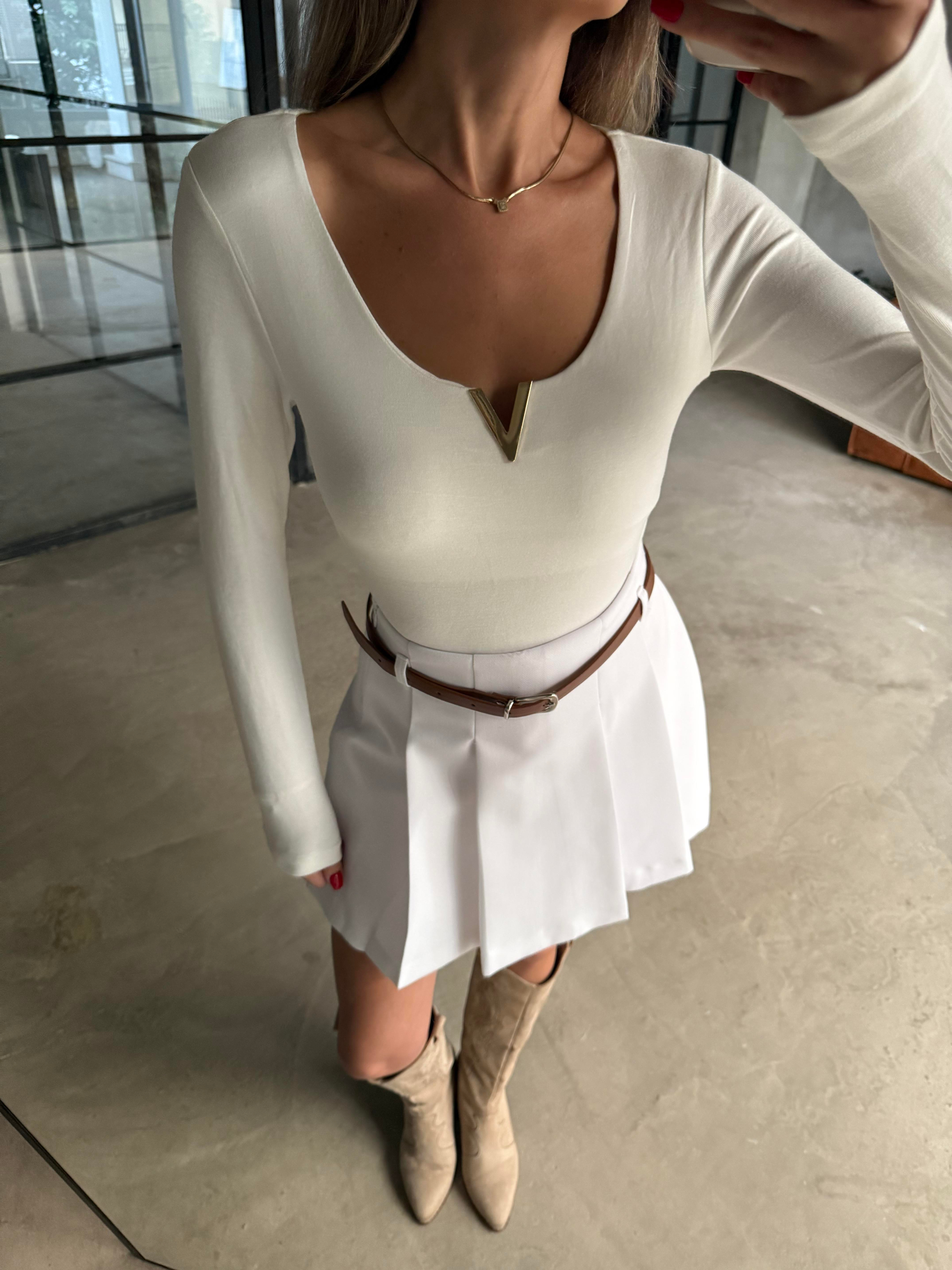 V Gold Tokalı Pamuklu Bluz - Beyaz (D20K-5016BLZ-41)