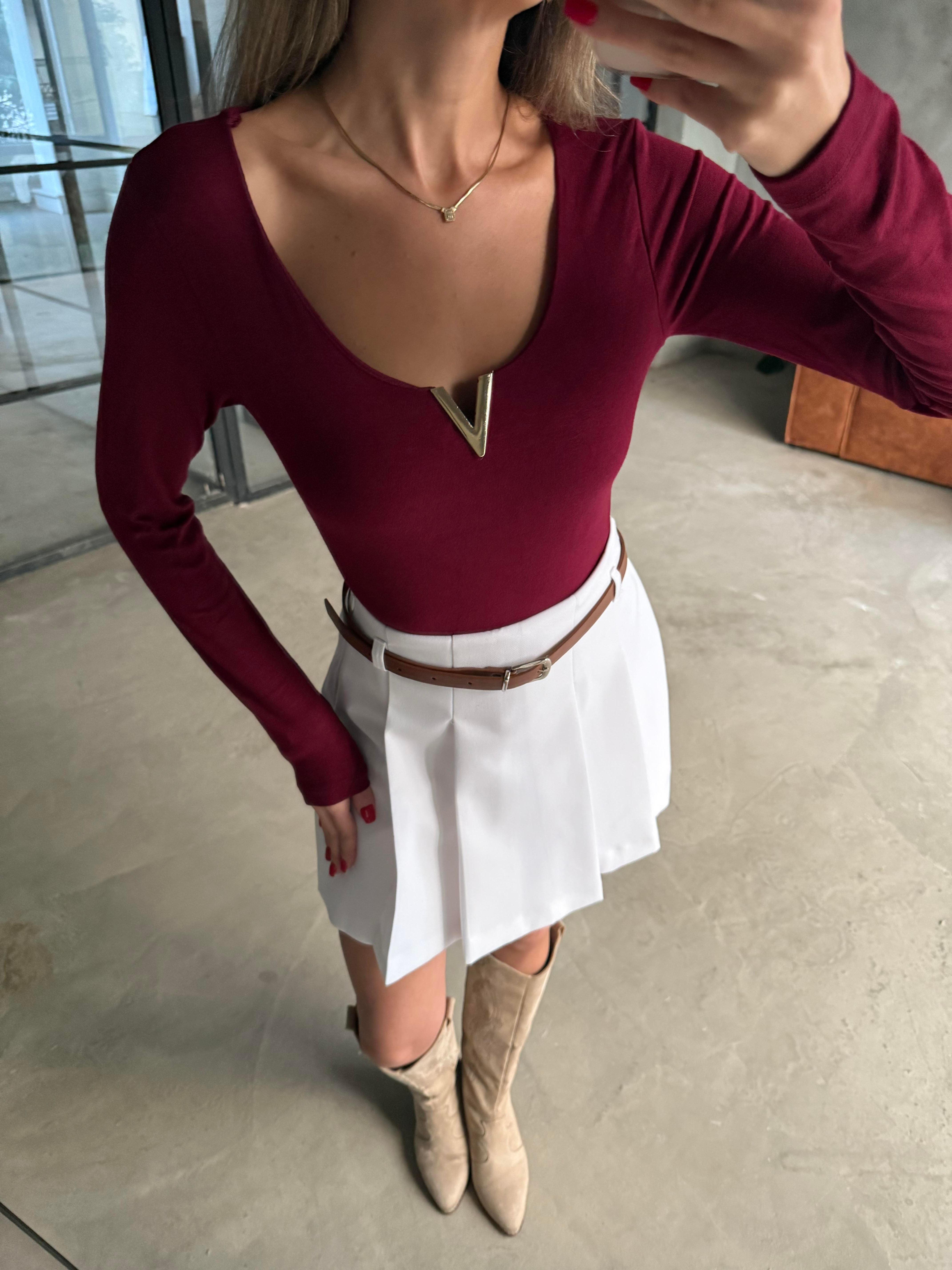 V Gold Tokalı Pamuklu Bluz - Bordo - Dominatrend